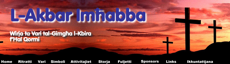 Insellmilkom, Għal darba oħra erġajna qegħdin fir-Randan Imqaddes u għalhekk mill-ġdid qed nerġa' niltaqa' magħkom permezz ta' dan il-ħsieb f'din il-Website. Iż-żmien tar-Randan Imqaddes m'huwiex biss żmien ta' sagrifiċċju biex fih nippreparaw ruħna kif jixraq għall-Għid il-Kbir, iżda huwa wkoll żmien li fih naħsbu u nirriflettu aktar kemm ħabbna l-Mulej. Biex tkompli ddaħħalna fl-ispirtu ta' dan iż-żmien u tgħina nirriflettu aktar fuq l-Akbar Imħabba li biha ħabbna Alla l-Missier qiegħed nerġa' ntella' Wirja tal-Passjoni, il-Mewt u l-Qawmien mill-Mewt ta' Sidna Ġesu' Kristu bl-isem ta' "l-Ikbar Imħabba" li tikkonsisti mhux biss fi' Statwi imma wkoll f'diversi simboli konnessi ma' dan iż-żmien qaddis. Din il-Wirja għandha tgħina wkoll nidħlu aktar fl-ispirtu ta' dan iż-żmien ta' riflessjoni aktar mis-soltu dwar din l-imħabba kbira li biha ħabbna Alla li bagħat lill-ibnu l-waħdieni biex jieħu l-Mewt għalina biex isalvana mid-dnub. Għax biex jinħafer id-dnub tad-dinja w aħna niġu mifdija mid-dnub, Ġesu' Kristu tant ħabbna li ried jagħmel ir-rieda ta' Alla l-Missier u jieħu l-mewt l-iżjed ħarxa l-Mewt tas-Salib. Nawgura l-Għid it-tajjeb lil kulhadd